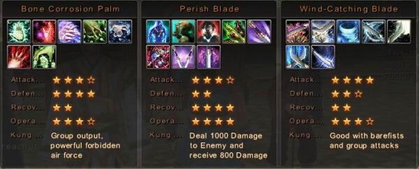Skill Perguruan: Wind-catching Blade, Perish Blade, Bone Corrosion Palm